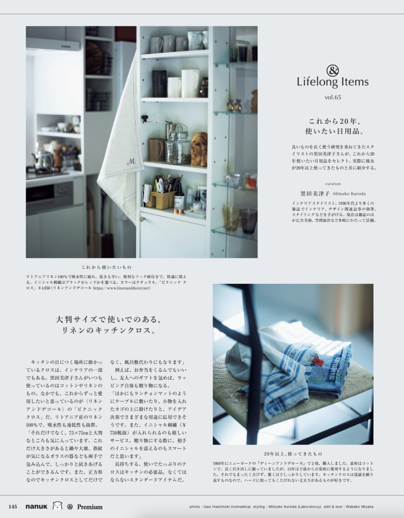 黒田がこれまで20年使ってきた私物と、これから20年使い続けたい現行品を撮り下ろしにて紹介する連載ページ。