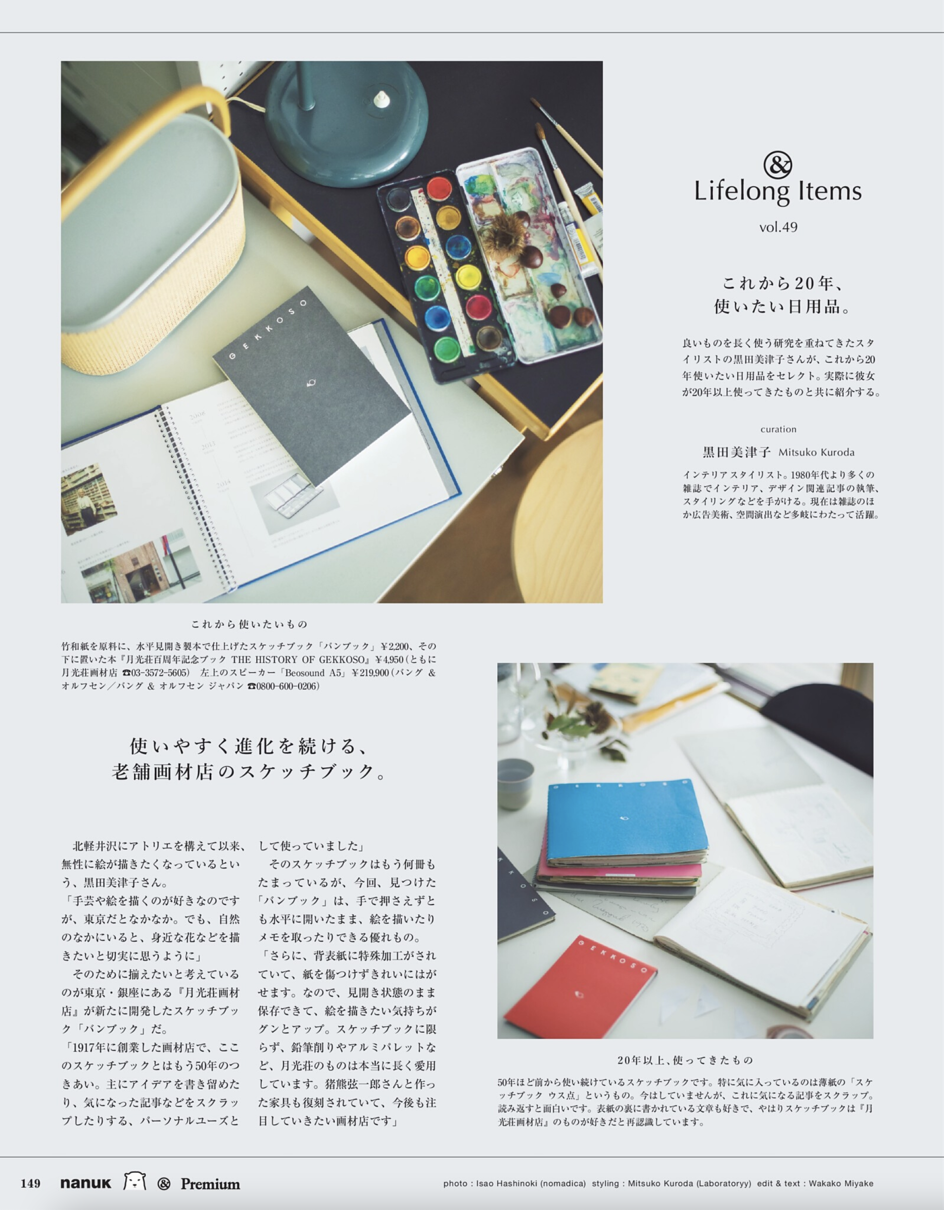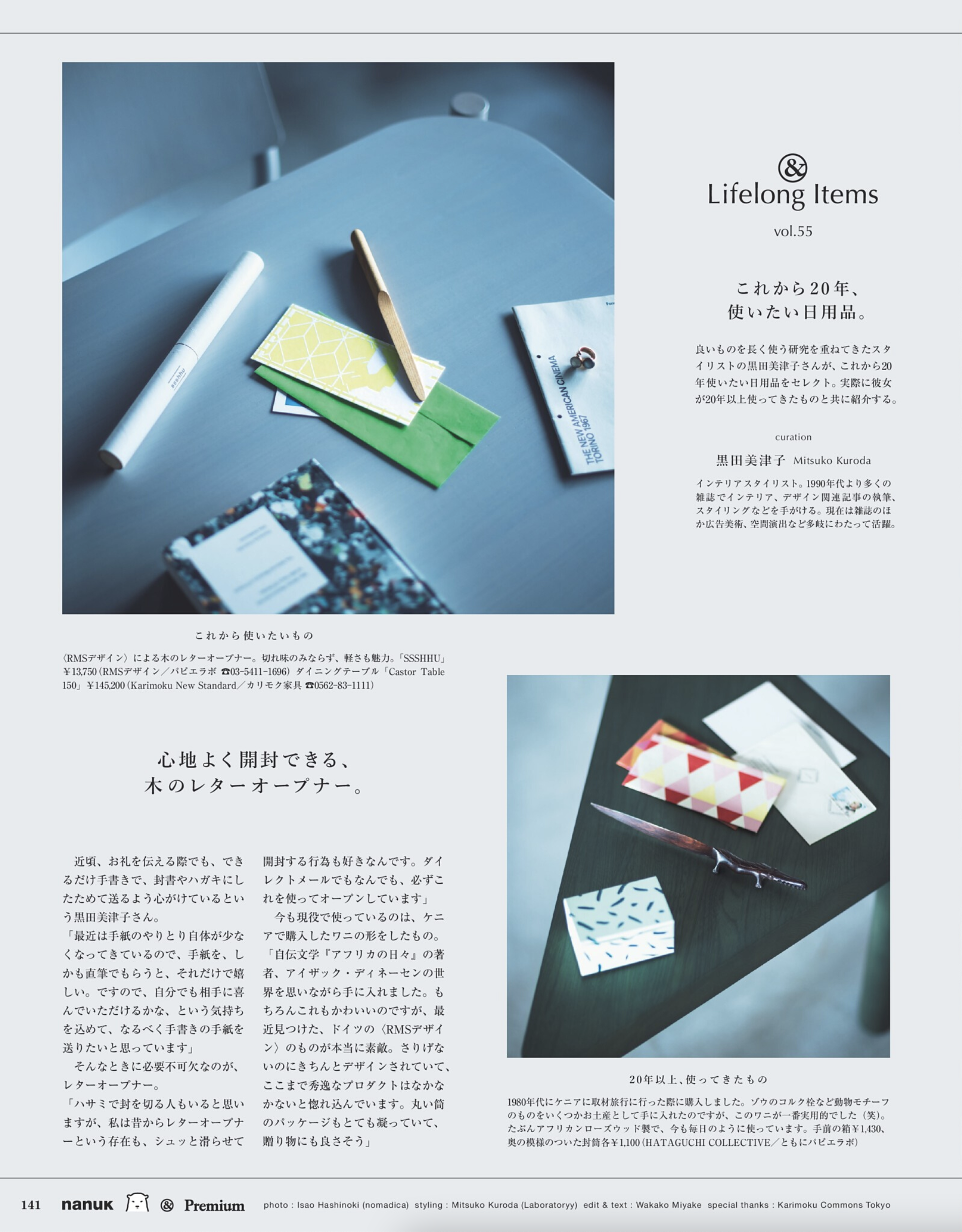 黒田がこれまで20年使ってきた私物と、これから20年使い続けたい現行品を撮り下ろしにて紹介する連載ページ。