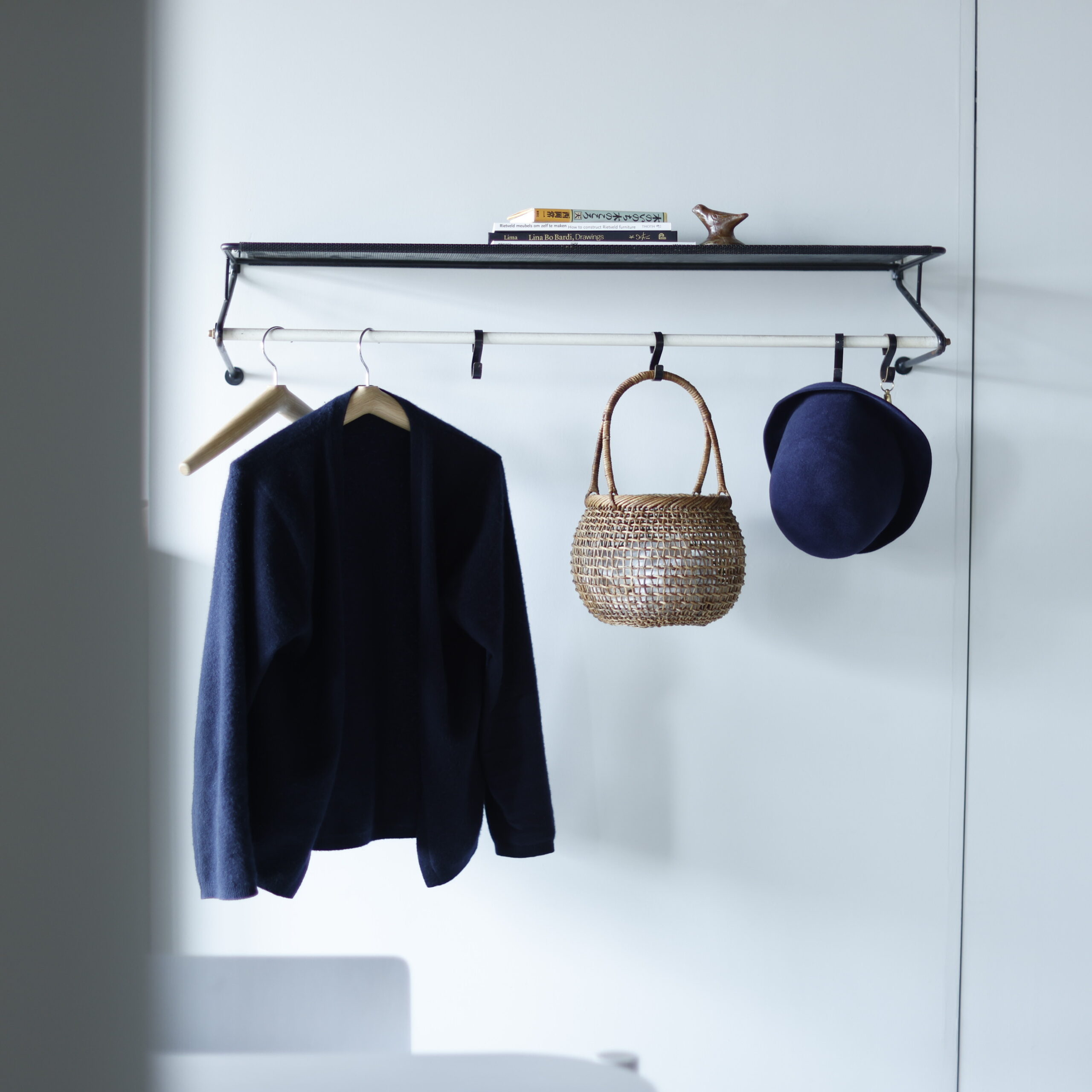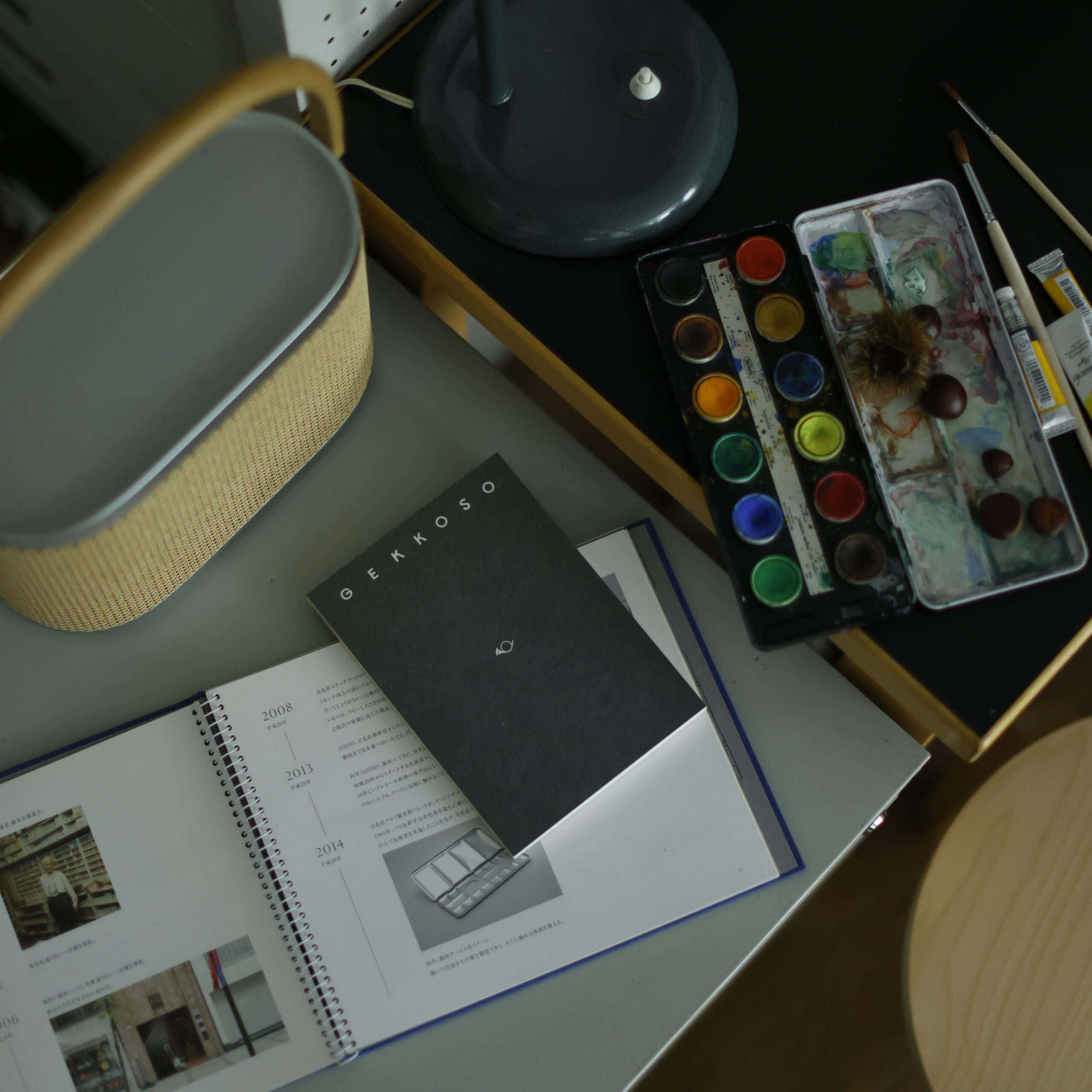 〈散らかりがちな紙ものをまとめる、手提げカゴ。〉