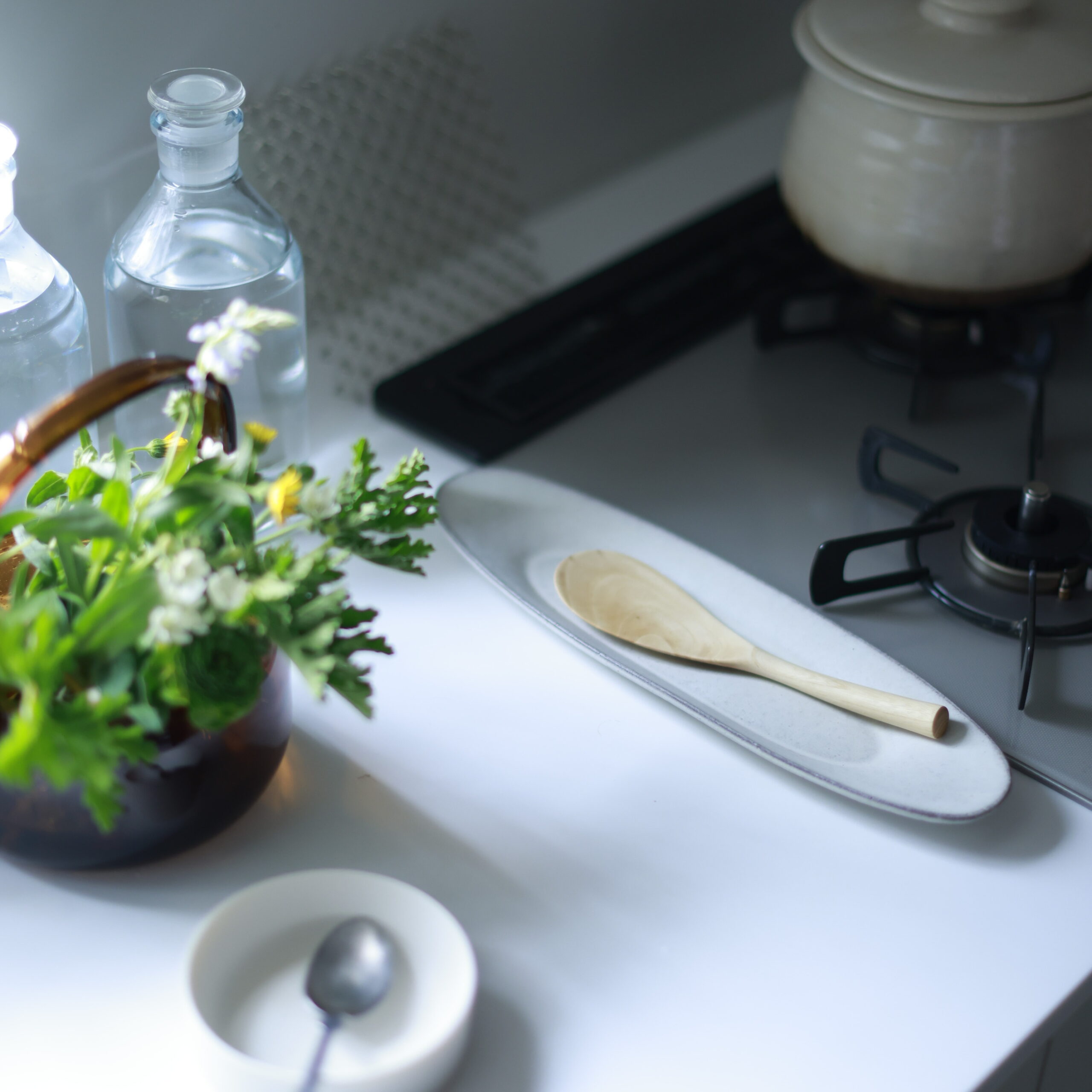 〈適当に生けても様になる、ユニークな形の花器。〉